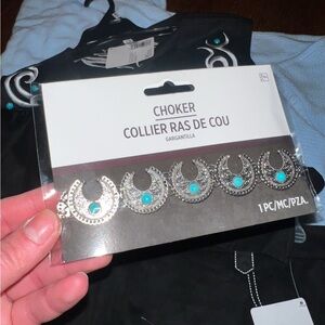 NWT Costume Fringe Cowgirl Vest Shorts W/ Choker White Stitching Blue Rivots XXL