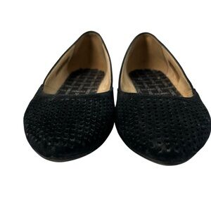 Vionic Posey Black Suede Perforated Pointed Toe Flats Women's Size 6.5