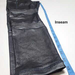 Athleta womens Inclination Moto tights / leggings with side pockets in metallic black. These pants are shimmery and may be lighter or darker depending on your lighting. Comes from a smoke-free environment.