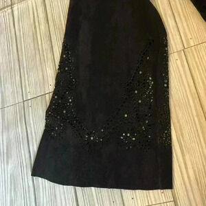 Size 12. Spiegel suede leather light weight jacket. Boho or Western wear. 3 Chinese frog closure buttons. Stud details with belle sleeves.