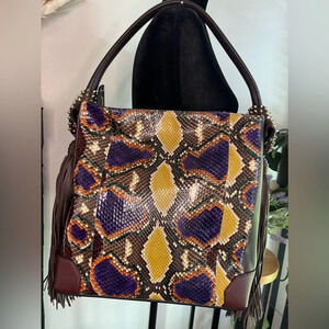Pre-owned excellent condition A+ Christian Louboutin Eloise Fringe Hobo Python with Leather Medium.