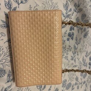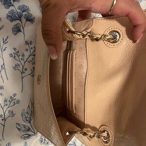 This elegant authentic Tory Burch beige/pinkish crossbody/shoulder bag is perfect for any occasion. Its sleek design and high-quality material make it a must-have accessory. The neutral beige color complements any outfit. In excellent condition, worn only once!
