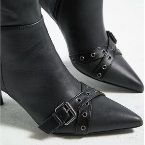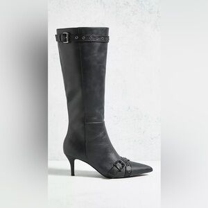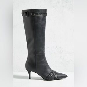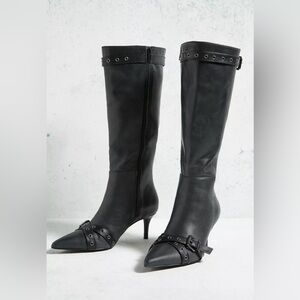 URBAN OUTFITTERS MOTO STILETTO KNEE HIGH LEATHER BOOTS. NEW IN BOX.