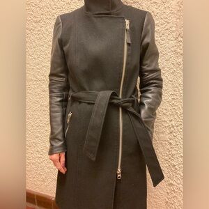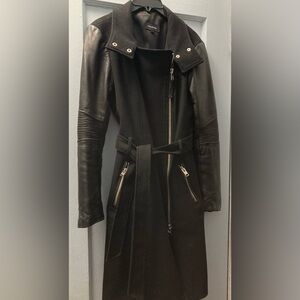 Women's Size Medium Mackage gorgeous black wool / leather coat in excellent condition