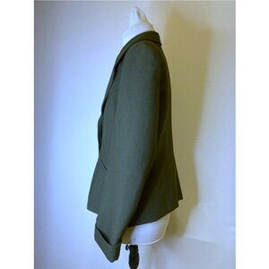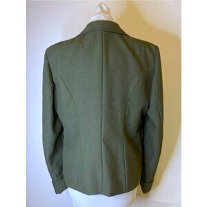 Fully lined 97% poly 3% viscose Golden Boat Sport Wear 40s style (right down to the bakelite-looking buttons) military inspired army green gored broadcloth blazer, has belt loops but no belt and buttons that . Front slant pockets and bust dart seam. My dress form is sadly too small to show off the really lovely shape and structure.