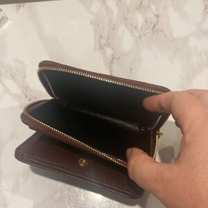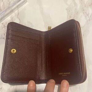 Gorgeous Authentic YSL Cassandre Matelasse’ Compact Zip Around Wallet, Chevron quilted overstitching. Calf skin leather. THE fall /winter 2025color🍁🍂🎅🎄- Oxblood with shiny gold hardware. 4.7” x 3.9” x 1.1” stunning color. Comes with branded dusty🐇😊