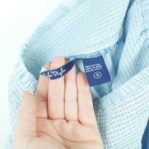 There is some sun fading at top portion of skirt on front and back. some pilling on back upper portion.