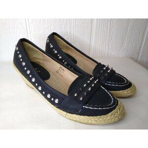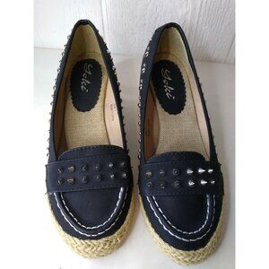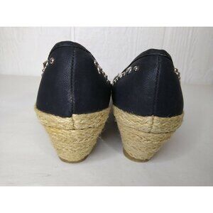 Yoki Holly Womens Black Vegan Wedge Heel Espadrille Metal Spikes Slip On Shoe 7