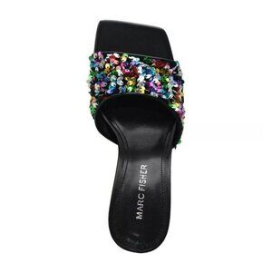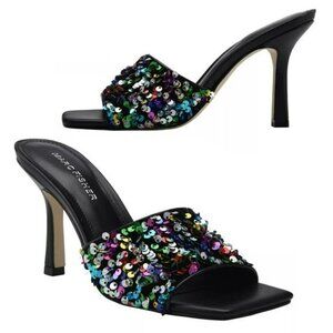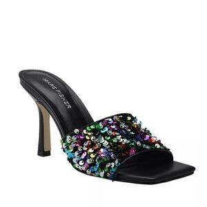 NWT MARC FISHER Women's Danria Sequin Stiletto Heel Sandals Dress Slip-on Heels