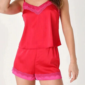 Lulus Two Piece Sleep Set Red Pink Lingerie Two Toned Womens XL Sensual