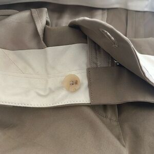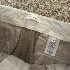 These are classic, flattering slim fit cropped khakis by The Row. Beautifully made with 100% cotton material and gorgeous hardware including horn button closure. Simple design but the quality is amazing. In excellent condition. Waist approx 15.5,” rise approx 9,” inseam approx 27.” Size 4.