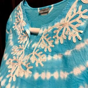 Catherine's Sky Blue & White Tie Dye Embroidered Top (Size 2X)