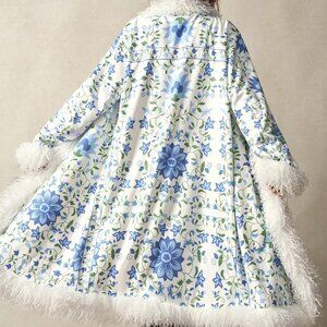 Boho Blues Women's Floral Print faux fur Fringe Trim Jacket