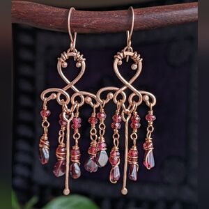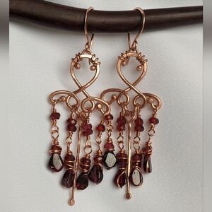 Handmade Garnet Chandelier Earrings Romantic Copper Jewelry