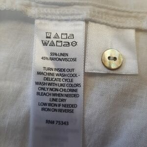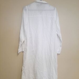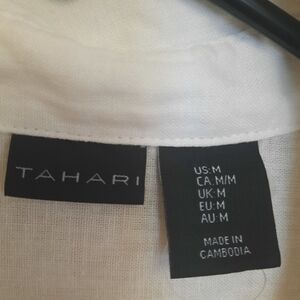 Tahari button-up shirt style dress. 55% linen. Sleeves can be worn long or rolled. Slits at the bottom. Women's size medium.