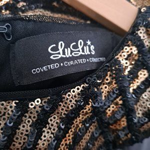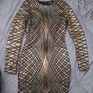 Truth or Dare Lulus Black and Gold Long Sleeve Sequin Dress size S