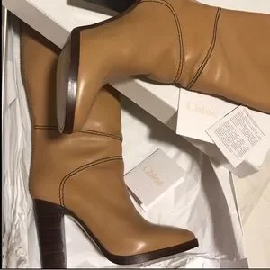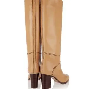CHLOE new Riding Heeled Boot Tan Brown Knee-High Calf Stitched Leather Boots