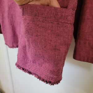 Cut Loose Linen Cotton Blend Top with Pocket Fringe Hem Size XL