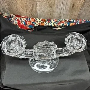 Fostoria pressed manganese depression glass candelabra pre-1930 (yellow glow)