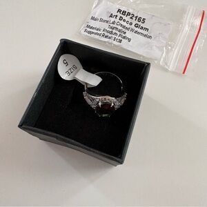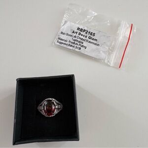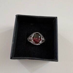 Bomb Party Art Deco Glam Ring RBP2165 Watermelon Tourmaline Rhodium Plating