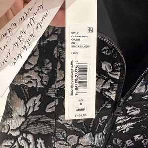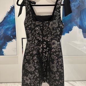 Alice and Olivia Maryann Tie Shoulder Dress in Black & Silver - New