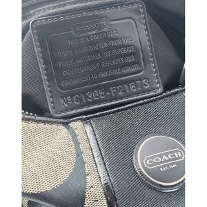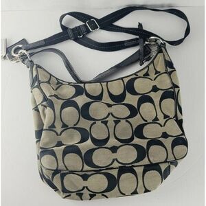 Coach Signature Stripe Hobo Convertible Shoulder Bag/Cross body Tan Black. Condition is "Pre-owned". Shipped with USPS Priority Mail. Some minor stains in some areas. Shoulder strap has some wear. Stain on inside of purse lining at the bottom.
