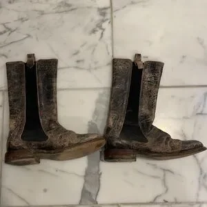 Bed Stu calf height boot. Size 6, very distressed style, fits tight around calf.