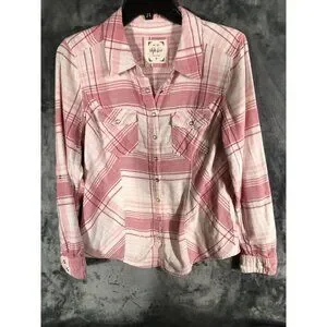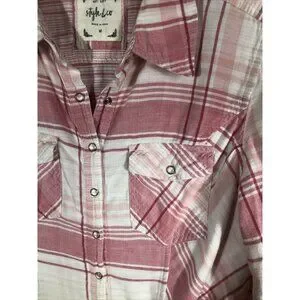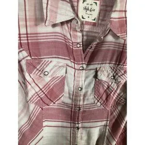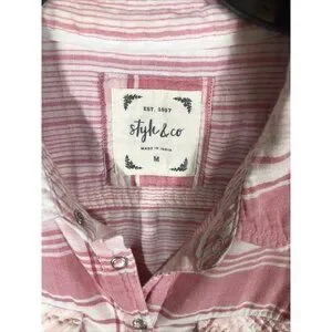 Style & Co Womens Shirt Button-Up Pink Plaid Size Medium