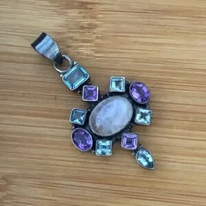 11 Channel Set Gemstones make up this drop pendant in Dark Sterling Silver