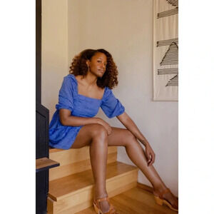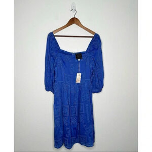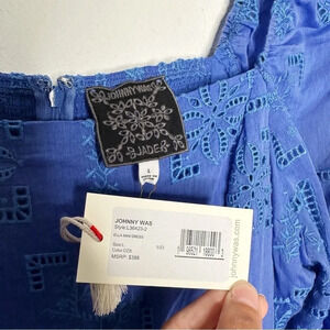 New with tags. Johnny Was Blue Ella Floral Mini Dress. Size large.