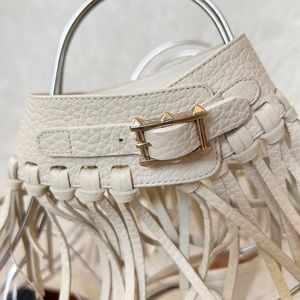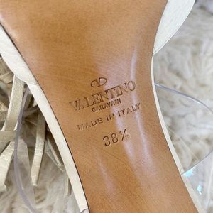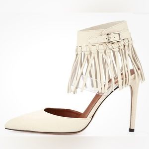 Valentino C-Rockee White Leather Illusion Fringe Ankle Wrap Heels Size EU 38.5