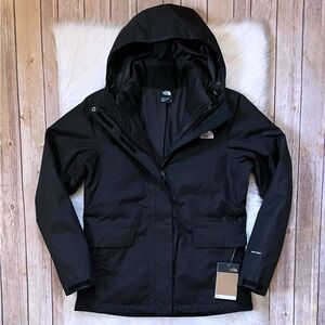 New With Tags- The North Face Women’s Monarch Insulated TriClimate 3 In 1 Hooded Jacket In TNF Black With Waterproof DryVent Technology, Adjustable Hood, Front Zip Closure, Pit Zip Venting, HeatSeeker Eco Insulation And Interior Detachable Jacket That Can Be Worn Alone As Well.