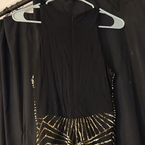 Black and Gold Art Deco Sequins Evening Dress - Size Medium