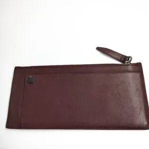 Embossed currency symbols add graphic edge to a slim 3.1 Philip Lim wallet. A snap flap pocket accents the back, and the zip top opens to a leather-lined interior.