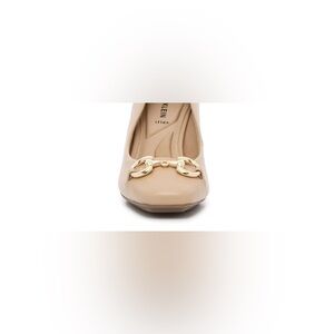 Professional looks can look a lot more polished with the Larkin pumps from Anne Klein. This shoe features a modest heel, a square toe, and goldtone bit accent across the vamp. Classic and timeless, you'll find yourself reaching for this heel time after time.