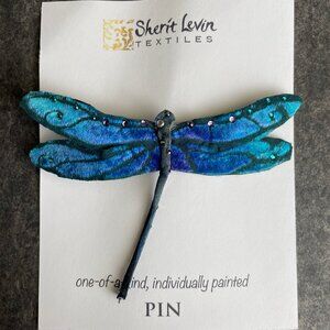 Sherit Levin artisan hand-painted velvet dragonfly pin