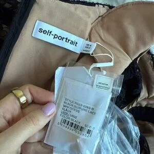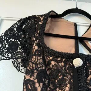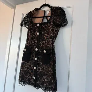 NWT Self-Portrait Guipure Lace Mini Dress In Black Gold-tone Buttons Square Neck