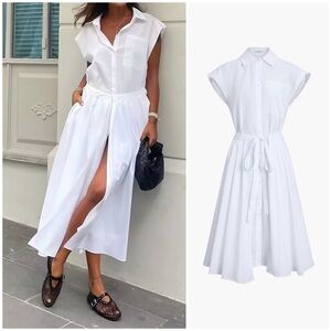 ZARA ~ Cotton Blends Sleeveless Split Midi Dress