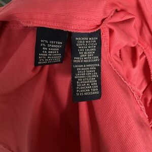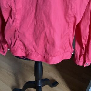 Brighten your wardrobe with this stylish pink jacket. Perfect for any occasion, it offers both comfort and fashion. There are a few light tan spots near the shoulder area and at the bottom of sleeve (see both pics).. Check out a fabric pen that works on some material. Never has been worn!