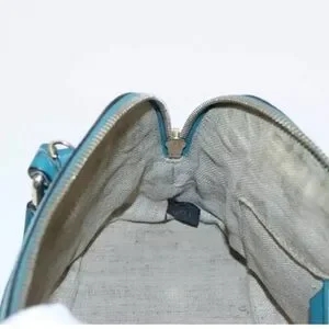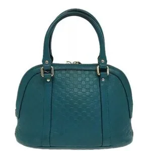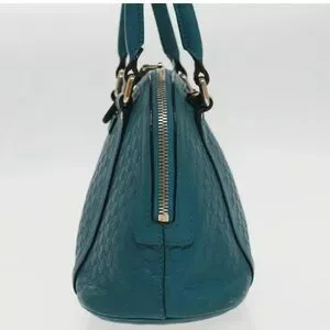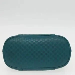 Authentic GUCCI Micro GG Canvas Hand Bag Leather 2way Turquoise Blue with strap