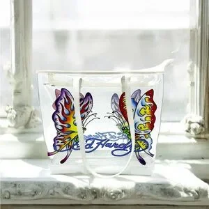 NWT Ed Hardy Y2K Brand PVC Clear Large Two Sided Purple ButteryPrint Tote