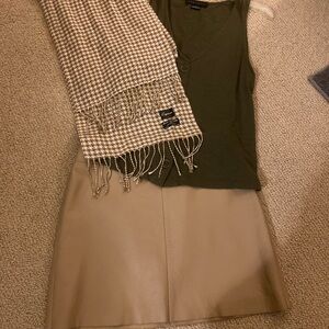 BCBG leather mini skirt, top and scarf