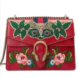 Gucci Dionysus Medium Raccoon-Embroidered Shoulder Bag, Red/Multicolor