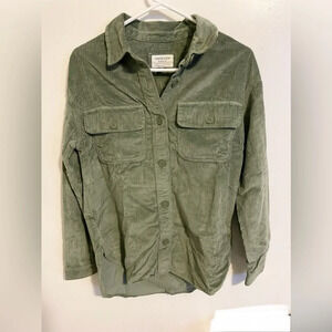 Sz US XXS AE women OVERSIZED CORDUROY SHIRT cotton,polyester NWT new with tag olive green never worn American Eagle Womens casual,shirt thick soft long sleeve button down button wrist pockets