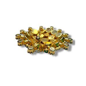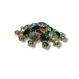 Vintage Gold Tone Brooch Green Clear Aurora Borealis Crystal Stones 2"