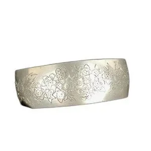 80s Leonard Pewter "Larkspur" Floral Etched Cuff Bracelet Vintage 6 1/4"