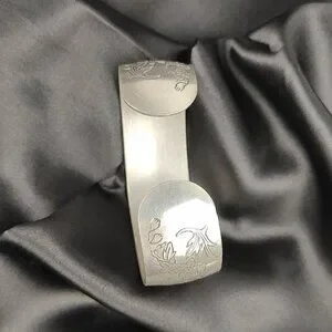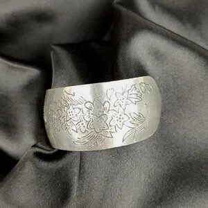 80s Leonard Pewter "Larkspur" Floral Etched Cuff Bracelet Vintage