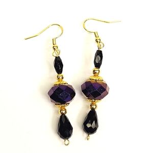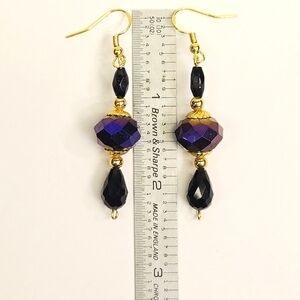 Handmade Purple and Black Faceted Glass Beaded Earrings