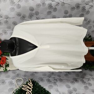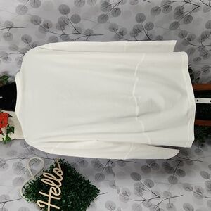 One to reach for, again and again. This soft cotton top features an open v-neckline and a roomy fit. The scooped back hem adds length for when you want a bit more coverage.