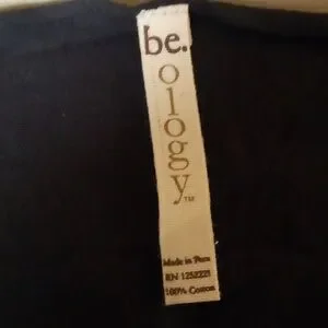 Be.ology 84" scarf made of lightweight 100% cotton. Black imprinted with grey star and phrase "Be.You".